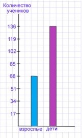 На цирковом представлении было 136 детей и 68 взрослых. Постройте столбчатую диаграмму (17 зрителей – 1 см).