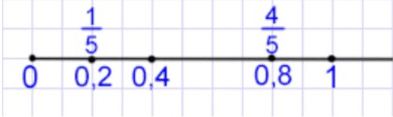 а) Объясните, как на координатном луче отметить числа , 0,2, 0,4 и 0,8.