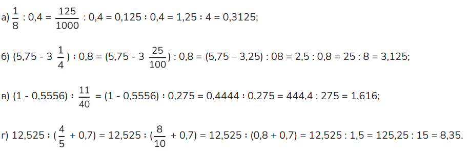 Превратите обыкновенную дробь в десятичную и вычислите значение выражения: