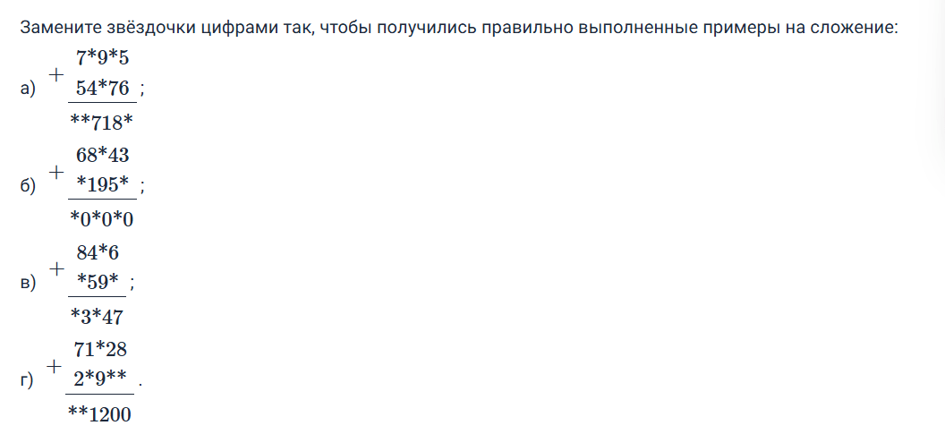 К 3 прибавим ∗ — получим 0; значит ∗=7