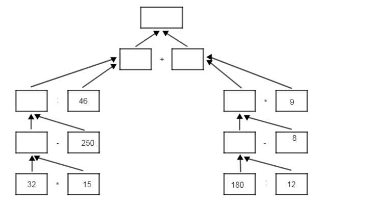 б) \((32 \cdot 15 — 250) : 46 + (180 : 12 — 8) \cdot 9 = 68\).