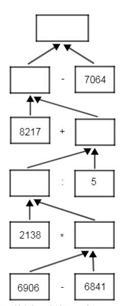 \(8217 + 2138 \cdot (6906 — 6841) : 5 — 7064\).