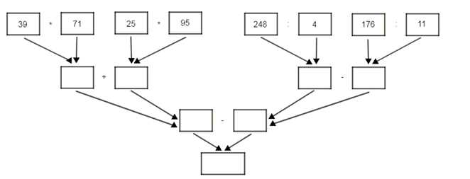(39 \cdot 71 + 25 \cdot 95) — (248 \div 4 — 176 \div 11) = 5098.