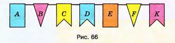 Равные флажки определяются по их форме и цвету. На рисунке видно, что флажок \(A\) и флажок \(E\) имеют одинаковую прямоугольную форму и одинаковый оранжевый цвет. Это позволяет утверждать, что \(A = E\), так как они визуально идентичны по форме и цвету. Таким образом, мы можем считать их равными, так как в условии задачи равенство флажков основывается на совпадении этих признаков.