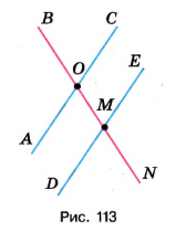 Измерьте углы \(AOB\), \(BOC\), \(DMN\), \(NME\) (рис. 113). Какие из этих углов равны?Измерьте углы \(AOB\), \(BOC\), \(DMN\), \(NME\) (рис. 113). Какие из этих углов равны?