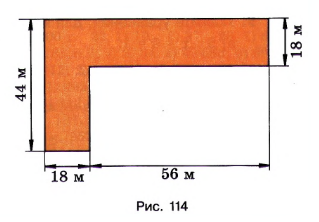Разделим участок на два прямоугольника. Первый с сторонами \(44 \text{ м}\) и \(18 \text{ м}\), второй с сторонами \(56 \text{ м}\) и \(18 \text{ м}\).