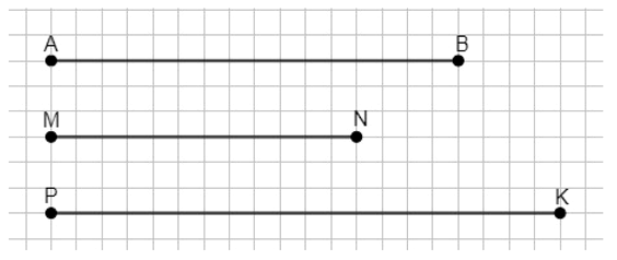 б) Теперь нужно найти длину отрезка \(PK\), который равен \(\frac{5}{4}\) длины отрезка \(AB\). Здесь дробь больше единицы, что означает, что отрезок \(PK\) длиннее \(AB\). Сначала вычисляем одну четвертую часть отрезка \(AB\) так же, как и в первом случае: \(8 : 4 = 2\) см. Затем умножаем эту часть на 5, так как нам нужна длина, равная пяти четвертям: \(2 \cdot 5 = 10\) см. Значит, длина отрезка \(PK\) равна 10 см.