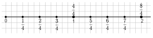 \(\frac{1}{4}, \frac{2}{4}, \frac{3}{4}, \frac{4}{4}, \frac{5}{4}, \frac{6}{4}, \frac{7}{4}, \frac{8}{4}\)