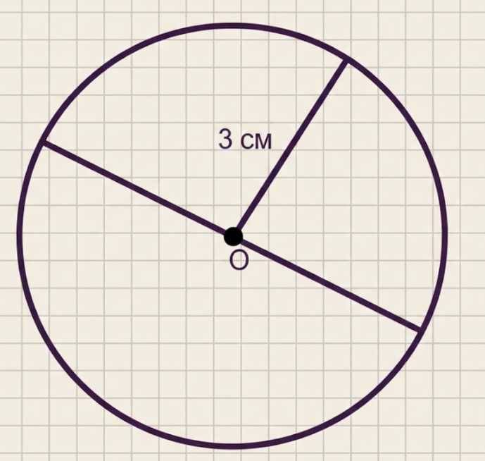 Диаметр окружности — это отрезок, который проходит через центр окружности и соединяет две противоположные точки на её границе. Диаметр всегда в два раза больше радиуса, так как он состоит из двух радиусов, соединённых в центре. Формула для диаметра выглядит так: \( d = 2r \). Подставляя известное значение радиуса, получаем \( d = 2 \times 3 = 6 \) см. Таким образом, диаметр равен 6 см, что подтверждается условием задачи.