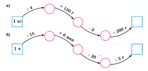 а) Сначала переводим килограммы в граммы, поскольку в условии используются разные единицы измерения массы. Известно, что \(1 \text{ кг} = 1000 \text{ г}\), поэтому для удобства работы с числами сразу переходим к граммам. Далее делим \(1000 \text{ г}\) на 4, чтобы найти массу одной части, что даёт \(1000 \text{ г} : 4 = 250 \text{ г}\). Это показывает, что одна часть весит 250 грамм.