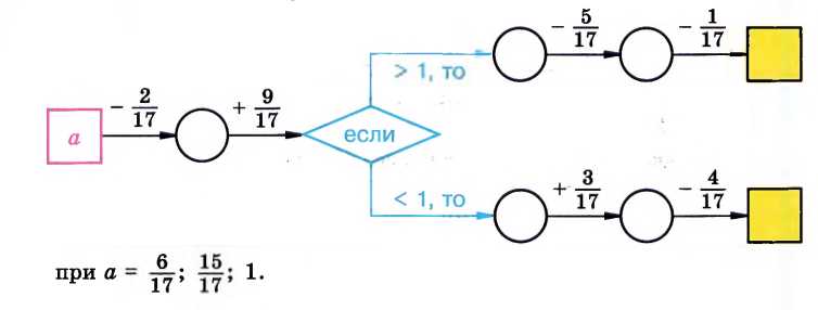 в) При \(a = 1\) сначала вычисляем \(1 — \frac{2}{17}\). Представляя 1 как \(\frac{17}{17}\), вычитаем \(\frac{2}{17}\), получая \(\frac{15}{17}\). Это уменьшение показывает, как от единицы отнимается дробное число.