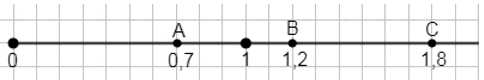 Таким образом, все три точки \( A(0,7) \), \( B(1,2) \), \( C(1,8) \) расположены на координатном луче в соответствии с их координатами, если принять длину десяти клеток за одну единицу. Это позволяет точно и наглядно отложить каждую точку, учитывая дробные значения координат.