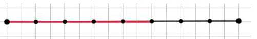 На изображении видно, что красным цветом выделены 5 точек, что соответствует \( \frac{5}{8} \) длины. Остальные 3 точки остались неокрашенными, что и подтверждает вычисленное значение \( \frac{3}{8} \). Таким образом, часть отрезка, которая не отмечена, равна \( \frac{3}{8} \).