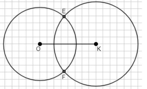 Расстояние от точки \(K\) до точек \(E\) и \(F\) равно 3 см. Это означает, что точки \(E\) и \(F\) находятся на окружности с центром в точке \(K\) и радиусом 3 см. Данное расстояние является радиусом второй окружности, а значит, длина отрезка \(KE\) и отрезка \(KF\) равна 3 см. Поскольку точки \(E\) и \(F\) лежат на обеих окружностях, радиусы этих окружностей связаны между собой через координаты центров и точки пересечения. Это важный факт для вычисления других геометрических параметров, таких как длина отрезка \(OK\) или радиусы окружностей.