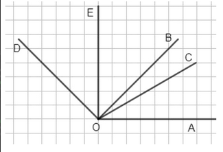 Угол \( \angle DOE = 135^\circ \) между лучами \(OD\) и \(OE\) можно найти, учитывая, что луч \(OD\) направлен влево и вверх под углом \(45^\circ\) к горизонтали в обратную сторону. Луч \(OE\) вертикален. Угол между ними равен сумме углов от горизонтали до \(OE\) и от горизонтали до \(OD\) в обратную сторону, то есть \(90^\circ + 45^\circ = 135^\circ\).