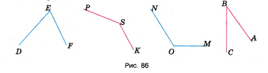 Измерьте углы, изображённые на рисунке 86, и запишите результаты измерений.