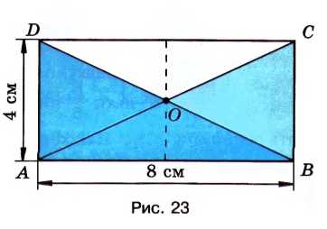 По рисунку 23 найдите площади треугольников \(ABC\), \(ACD\), \(ABO\) и \(BCO\).