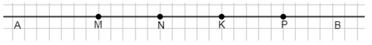 На рисунке изображен отрезок \(AB\), на котором расположены точки \(M, N, K, P\). Из точек \(A\) и \(B\) проведены лучи, проходящие через эти промежуточные точки. Луч — это часть прямой, которая начинается в одной точке и продолжается бесконечно в одном направлении. В данном случае лучи начинаются в точках \(A\) или \(B\) и проходят через точки \(M, N, K, P\).