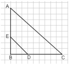 б) Четырехугольник \( ACDE \) является частью треугольника \( ABC \), так как все его вершины \( A \), \( C \), \( D \) и \( E \) лежат внутри или на границах треугольника \( ABC \). В частности, вершины \( A \) и \( C \) — это вершины треугольника, а точки \( D \) и \( E \) расположены на сторонах треугольника \( ABC \) (соответственно на сторонах \( BC \) и \( AB \)). Это гарантирует, что четырехугольник \( ACDE \) полностью содержится внутри треугольника \( ABC \).