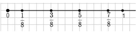 0, \( \frac{1}{8} \), \( \frac{3}{8} \), \( \frac{5}{8} \), \( \frac{7}{8} \), 1.