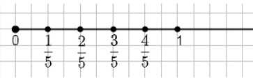 0, \( \frac{1}{5} \), \( \frac{2}{5} \), \( \frac{3}{5} \), \( \frac{4}{5} \), 1.