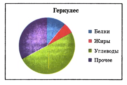 10. На диаграмме показано содержание питательных веществ в геркулесе. Определите по диаграмме, содержание каких веществ составляет 50 %.