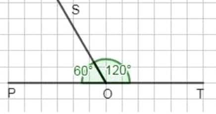 а) На развернутом угле \(ROT\) сумма смежных углов вдоль прямой равна \(180^\circ\). По условию угол \(POS\) вдвое меньше угла \(SOT\), поэтому обозначим \( \angle POS = x^\circ\), тогда \( \angle SOT = 2x^\circ\). Складываем углы на прямой: \(x + 2x = 180^\circ\). Получаем уравнение \(3x = 180^\circ\), откуда \(x = 60^\circ\). Следовательно, \( \angle POS = 60^\circ\). Подставляя \(x\) во второе выражение, имеем \( \angle SOT = 2 \cdot 60^\circ = 120^\circ\). Эти значения согласуются с чертежом: меньший угол у точки \(O\) равен \(60^\circ\), а смежный к нему дополняет до прямой и потому равен \(120^\circ\).