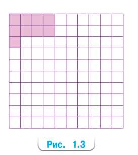 Квадрат на рисунке 1.3 разбит на 100 долей. Найдите площадь всего квадрата, если закрашено 20,25 см².