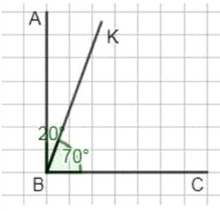 Тогда \(\angle KBC = 90^\circ — 20^\circ = 70^\circ\).