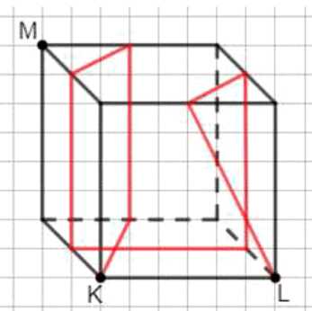б) который пересекает все горизонтальные рёбра куба, кроме ребра KL.