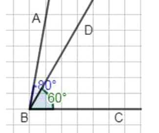 Пусть луч \(BC\) задан, и известны углы \(\angle ABC = 80^\circ\) и \(\angle DBC = 60^\circ\).