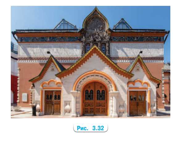 Симметричен ли на фотографии фасад здания Государственной Третьяковской галереи в Москве (рис. 3.32)? Если да, то как расположена ось симметрии фасада?