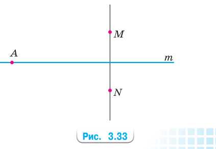 Убедитесь, используя линейку, что точка A, лежащая на оси симметрии m, одинаково удалена от симметричных относительно прямой m точек M и N (рис. 3.33).