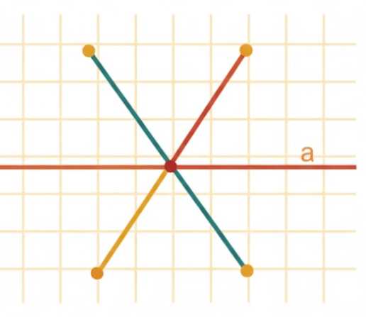 При этом важно понимать, что если отрезки лежат по разные стороны от прямой симметрии, то они как бы «зеркально» отображаются друг в друга, и точка пересечения на прямой является общей для обоих отрезков. Это значит, что отрезки могут иметь общую точку, и эта точка лежит ровно на линии симметрии, обозначенной буквой \(a\) на рисунке. В других местах, отличных от прямой, пересечения не будет, так как отражение меняет расположение точек относительно прямой.