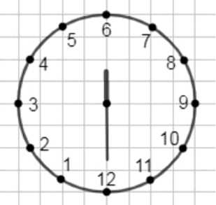 а) Симметрия относительно центра циферблата означает, что каждая точка на циферблате отражается через центр на точку, расположенную на противоположной стороне окружности. Если часовая стрелка указывает вниз (на 6 часов), то после такой симметрии она окажется вверху (на 12 часов). Аналогично, минутная стрелка, которая была вверху (на 12 часов), после отражения окажется внизу (на 6 часов). При этом направление движения стрелок не изменяется, так как симметрия не меняет порядок следования точек по окружности. Таким образом, движение стрелок сохраняется, только их положение меняется на противоположное относительно центра.