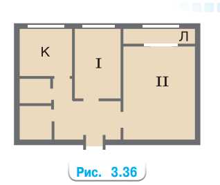 Определите по плану (рис. 3.36) размеры двухкомнатной квартиры. Найдите размеры кухни (К), лоджии (Л) и каждой комнаты (I и II), если масштаб плана 1 : 200.
