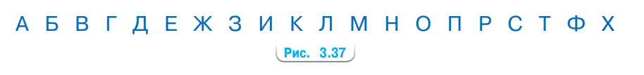 а) Какие из букв на рисунке 3.37 имеют вертикальную ось симметрии, какие имеют горизонтальную ось симметрии, какие имеют и вертикальную, и горизонтальную оси симметрии?