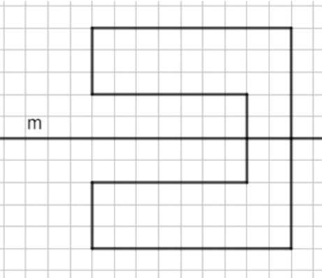 а) Для построения фигуры, симметричной данной относительно прямой \( m \), необходимо сначала определить положение каждой вершины исходной фигуры относительно этой прямой. Для этого от каждой вершины проводят перпендикуляр к прямой \( m \). Перпендикуляр — это отрезок, который образует с прямой угол \( 90^\circ \). Этот шаг важен, так как именно по перпендикуляру будет отложено расстояние для построения симметричной точки.