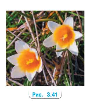 Изображение цветка на фотографии (рис. 3.41) симметрично, что означает, что его форма и расположение частей повторяются при определённых преобразованиях. В данном случае можно наблюдать два вида симметрии: осевую и центральную. Осевая симметрия означает, что если провести воображаемую линию (ось симметрии) через центр цветка, то одна половина будет зеркальным отражением другой. Центральная симметрия предполагает, что при повороте изображения на 180 градусов вокруг центра цветка, оно совпадёт само с собой.
