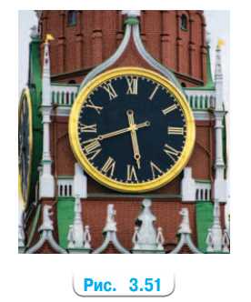 а) Площадь циферблата кремлёвских курантов приближённо равна 29,21 м\(^2\) (рис. 3.51). Найдите радиус циферблата.
