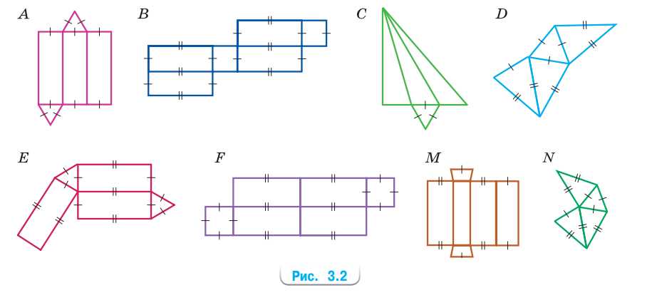 Какие фигуры (рис. 3.2) являются развёртками (штрихами отмечены равные отрезки):