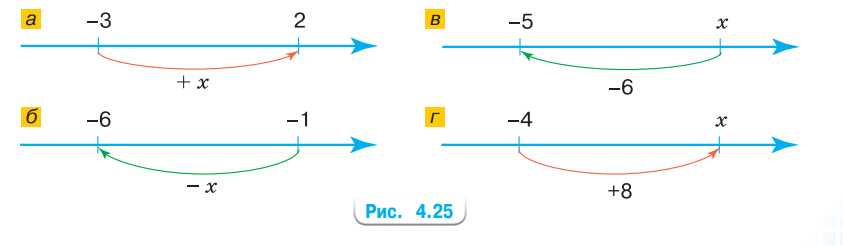 г) В уравнении \( -4 + 8 = x \) сначала вычислим левую часть. \( -4 + 8 = 4 \). Значит, \( x = 4 \). Здесь переменная уже изолирована, и осталось только посчитать числовое выражение. Ответ: \( x = 4 \).