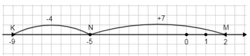 3) Таким образом, перемещение точки по координатной прямой определяется сложением или вычитанием числа, равного величине перемещения, к исходной координате. Если число положительно, движение вправо, если отрицательно — влево. В первом случае точка \(N(-5)\) сместилась вправо на 7 единиц и стала точкой \(M(2)\). Во втором случае точка \(N(-5)\) сместилась влево на 4 единицы и стала точкой \(K(-9)\). Это наглядно показывает, как можно определить положение точки после перемещения, используя простые арифметические операции на числовой оси.