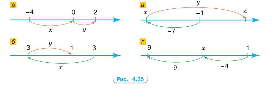 По схеме на рисунке 4.35 найдите значения \(x\) и \(y\).