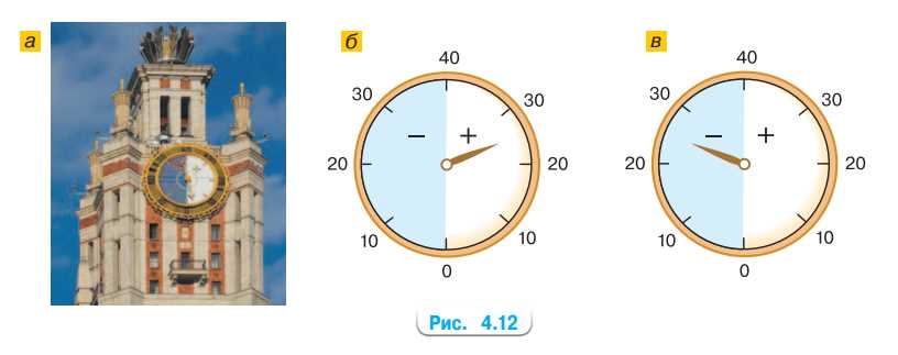 На главном здании Московского государственного университета установлен термометр в форме круга со стрелкой (рис. 4.12, а).