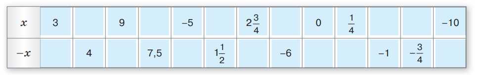 | -x | -3 | 4 | -9 | 7,5 | 5 | 1\(\frac{1}{2}\) |