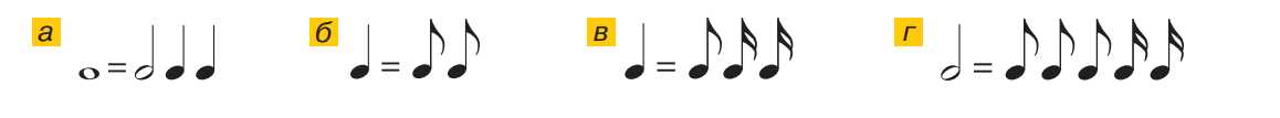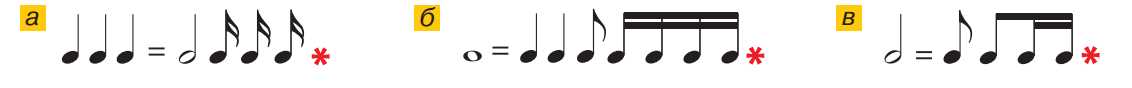 2) Вместо звёздочки поставьте в равенстве недостающие ноты.