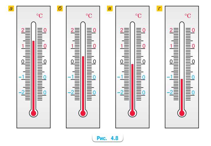 Какую температуру показывает каждый из термометров, изображённых на рисунке 4.8?