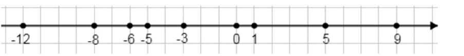Отметьте на координатной прямой числа \(-8, 1, -5, -6, 9, 0, -3, -12, 5, 6\) и сравните: