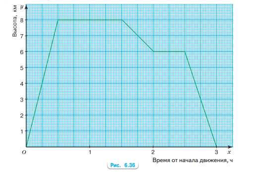 На рисунке 6.36 показан график зависимости высоты полёта от времени полёта. Определите по графику: